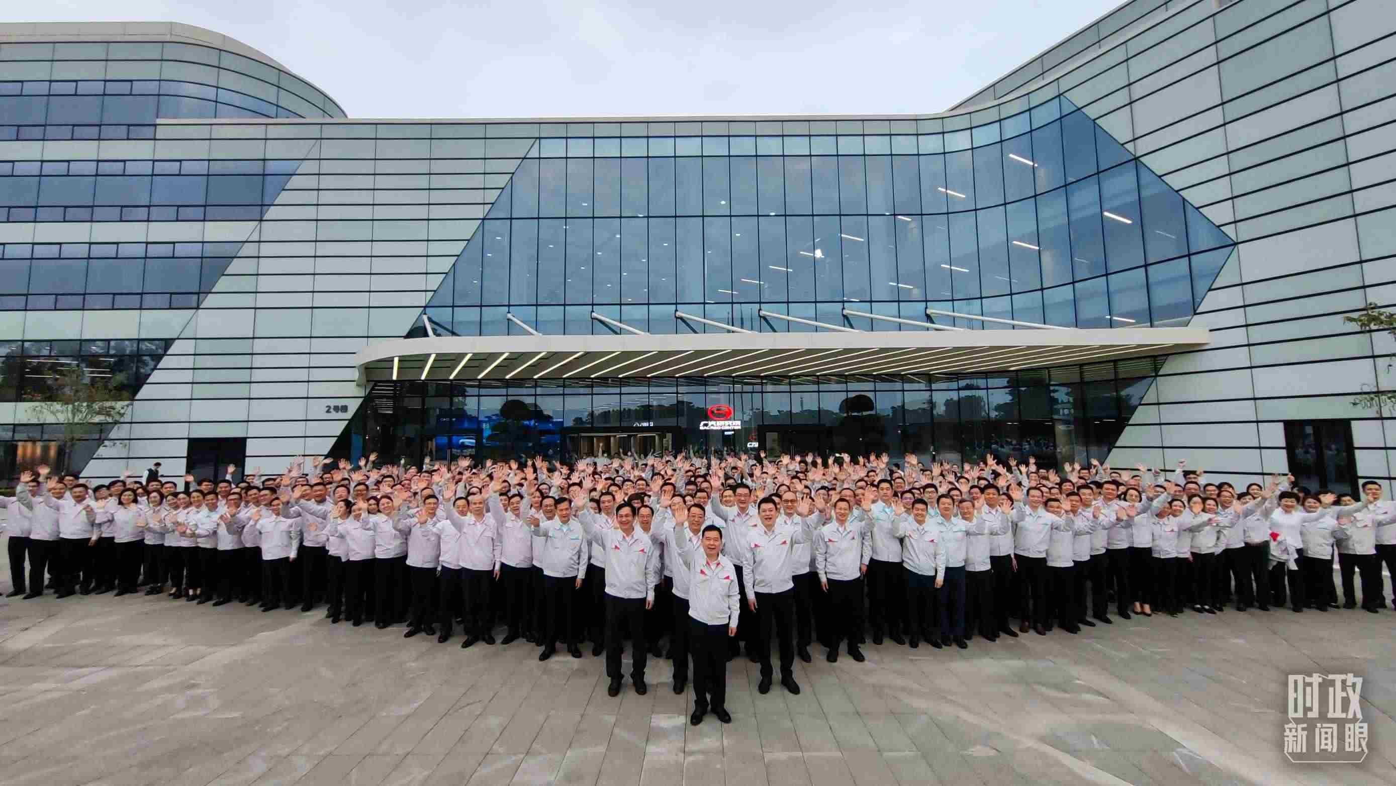 △考察當(dāng)天,廣汽員工代表大合影。(總臺央視記者張曉鵬拍攝)