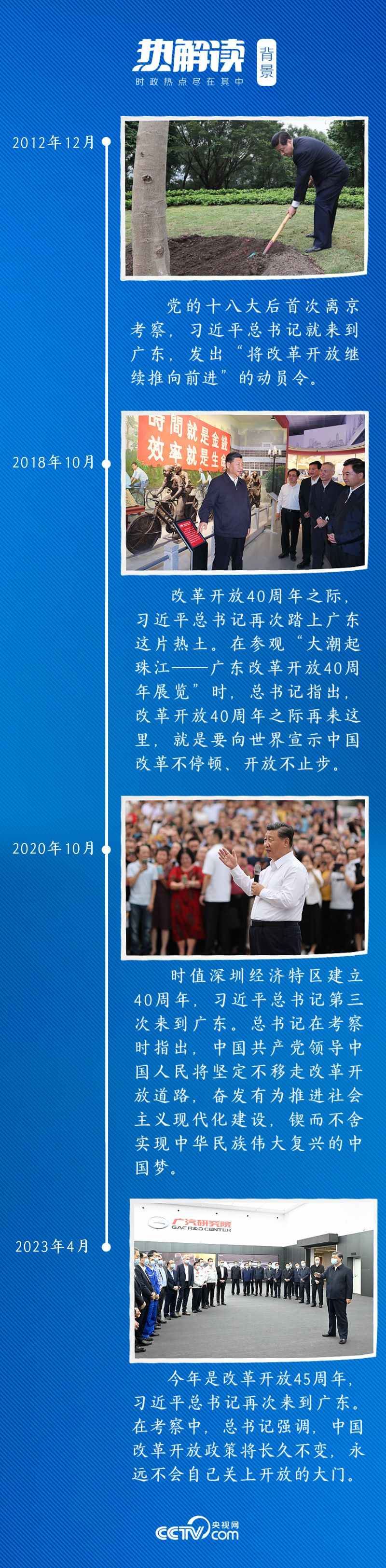 改革開(kāi)放是廣東最鮮明特征。黨的十八大以來(lái),習(xí)近平總書(shū)記四次到廣東考察,“改革開(kāi)放”每次都是考察的關(guān)鍵詞。