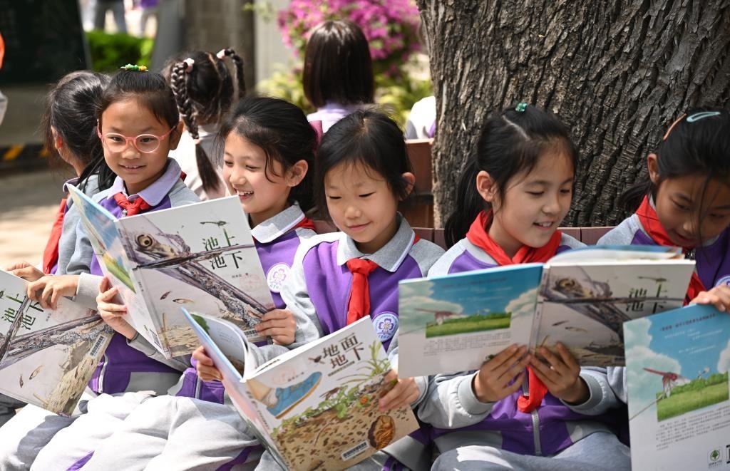 在她的校園里,有一棵“長(zhǎng)滿(mǎn)書(shū)的大樹(shù)”,掛滿(mǎn)了《神筆馬良》《西游記》《可愛(ài)的中國(guó)》等經(jīng)典書(shū)籍。教學(xué)樓走廊里、教室里,隨處可見(jiàn)各種圖書(shū)。踏著閱讀的階梯,祖國(guó)的花朵茁壯成長(zhǎng)。