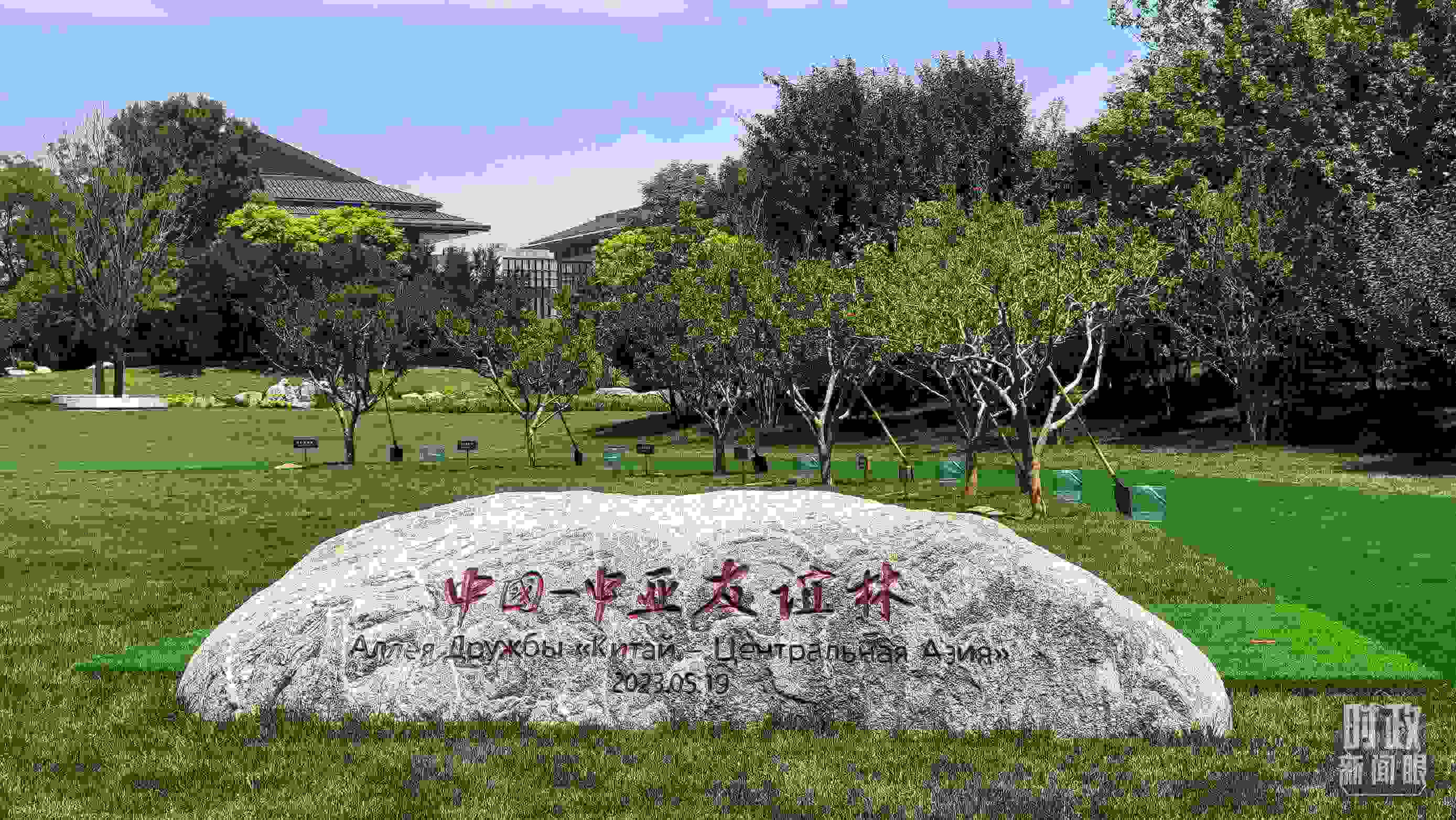 △ 中國-中亞友誼林內(nèi)的六棵石榴樹。(總臺央視記者鐘信偉拍攝)