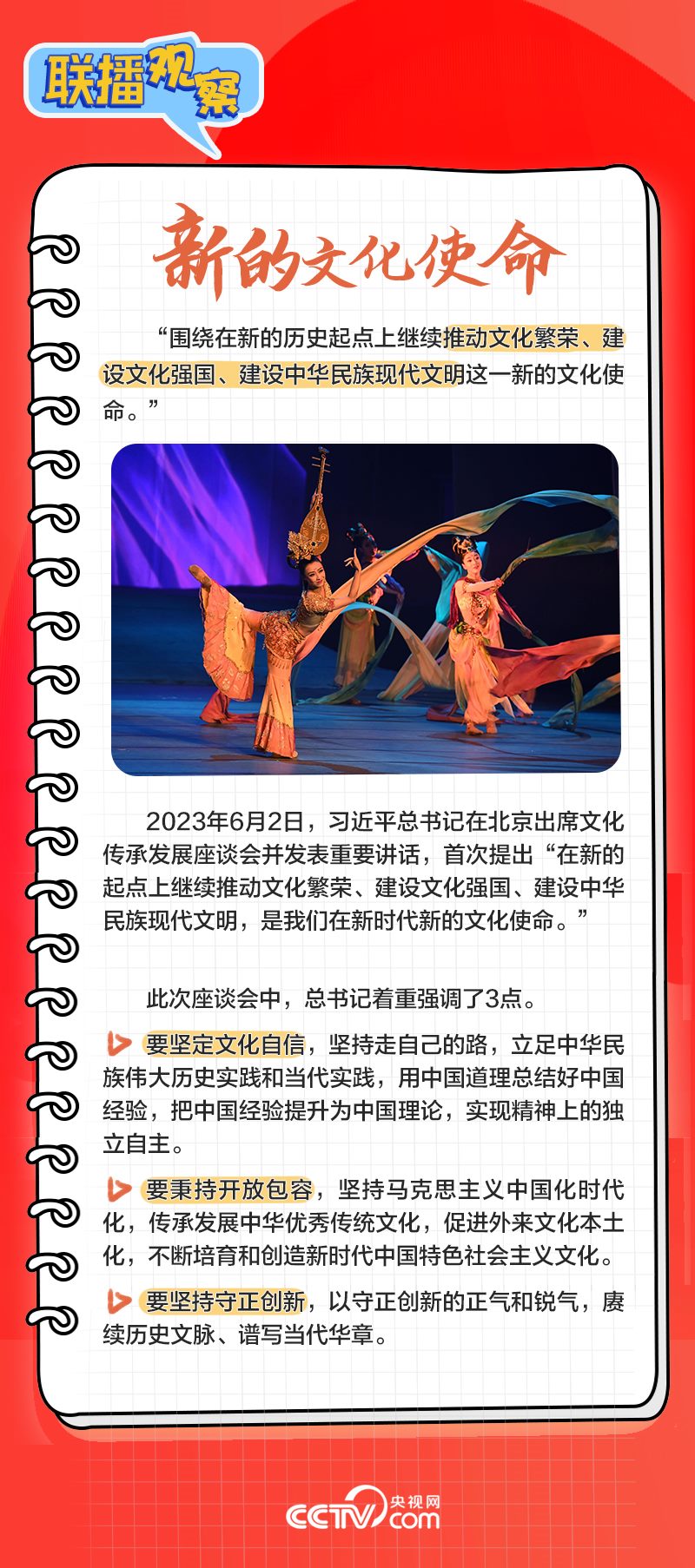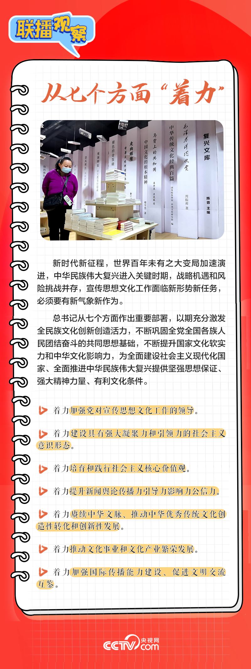 近日,習(xí)近平總書記對宣傳思想文化工作作出重要指示,提出“新的文化使命”“首要政治任務(wù)”等論斷,并要求從七個方面著力,為全面建設(shè)社會主義現(xiàn)代化國家、全面推進(jìn)中華民族偉大復(fù)興提供堅強(qiáng)思想保證、強(qiáng)大精神力量、有利文化條件。