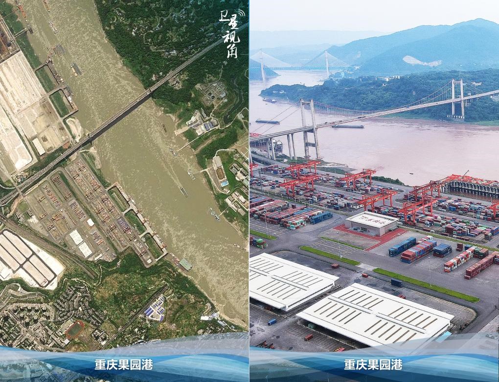 重慶果園港是長江上游第一大港口。習(xí)近平來到重慶果園港碼頭前沿平臺(tái),考察長江航運(yùn)和港口裝卸作業(yè)。