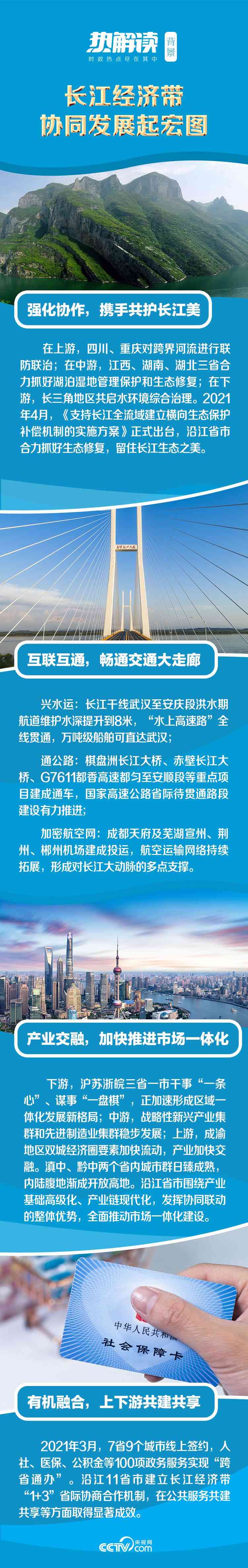 從環(huán)境保護到基礎(chǔ)設(shè)施互聯(lián)互通,從市場一體化建設(shè)到公共服務共建共享,長江上中下游協(xié)同聯(lián)動發(fā)展,打造出區(qū)域協(xié)調(diào)發(fā)展的新樣板。