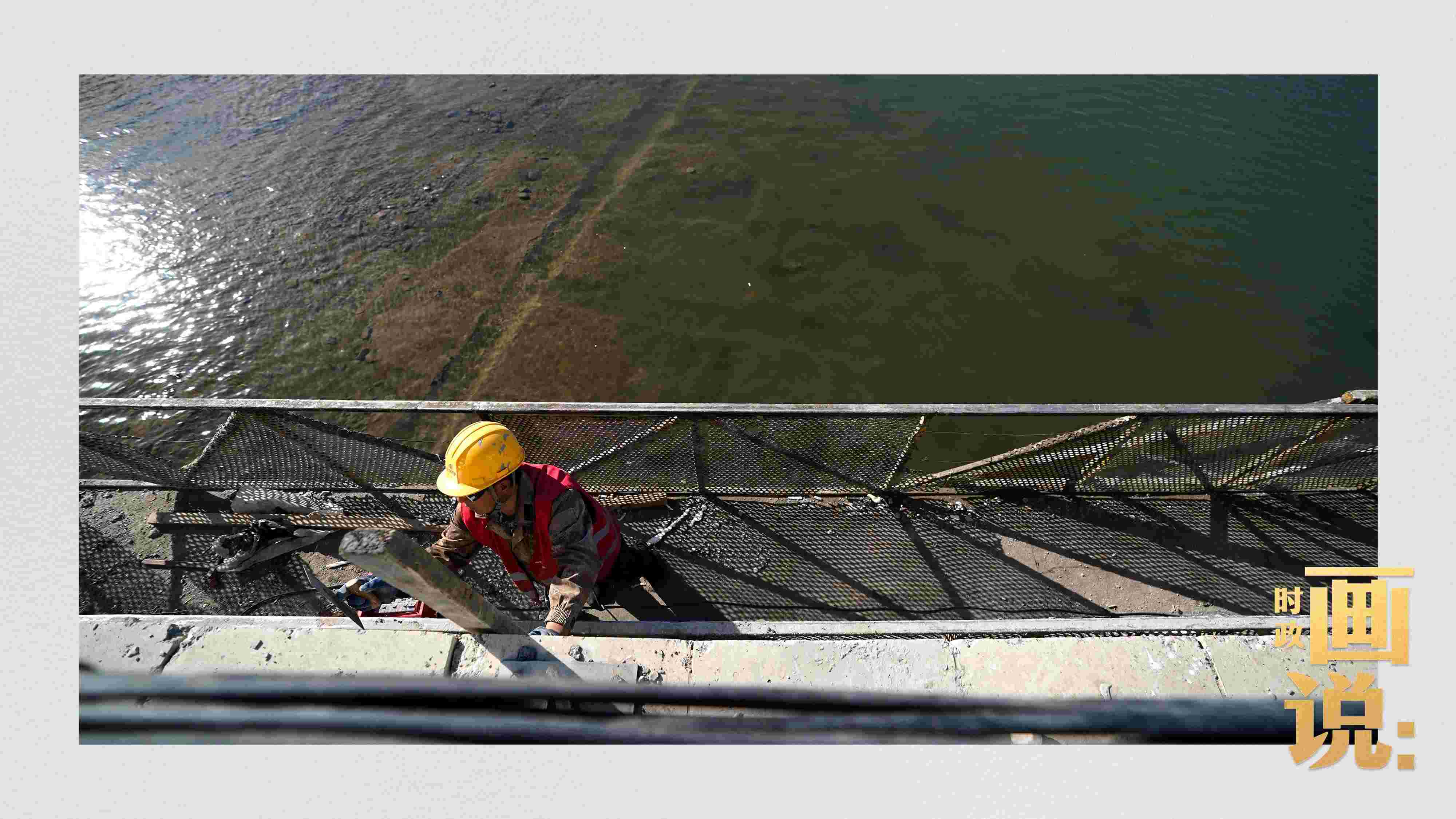△工人在重新加固的橋梁上加裝路燈。水峪嘴村,北京。冬日里的永定河靜靜流淌,一度受災(zāi)嚴(yán)重的流域沿線正在重回平靜。
