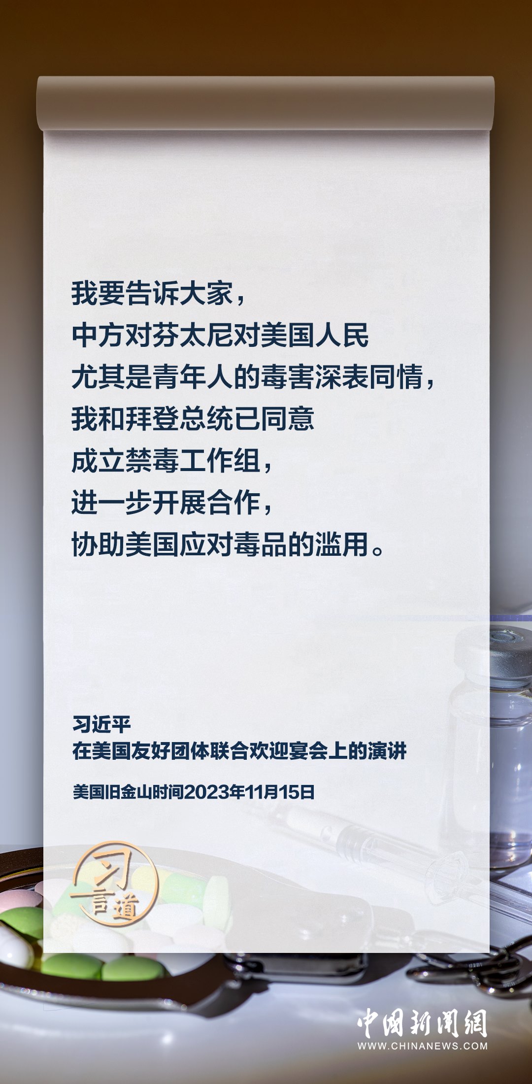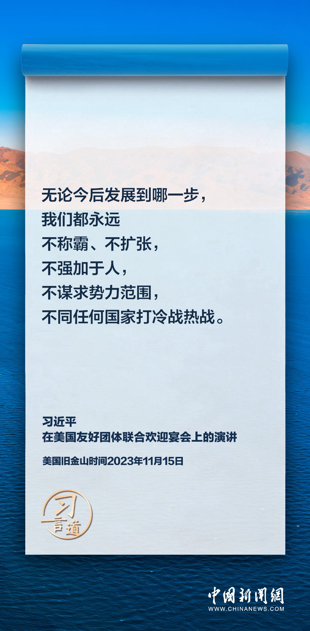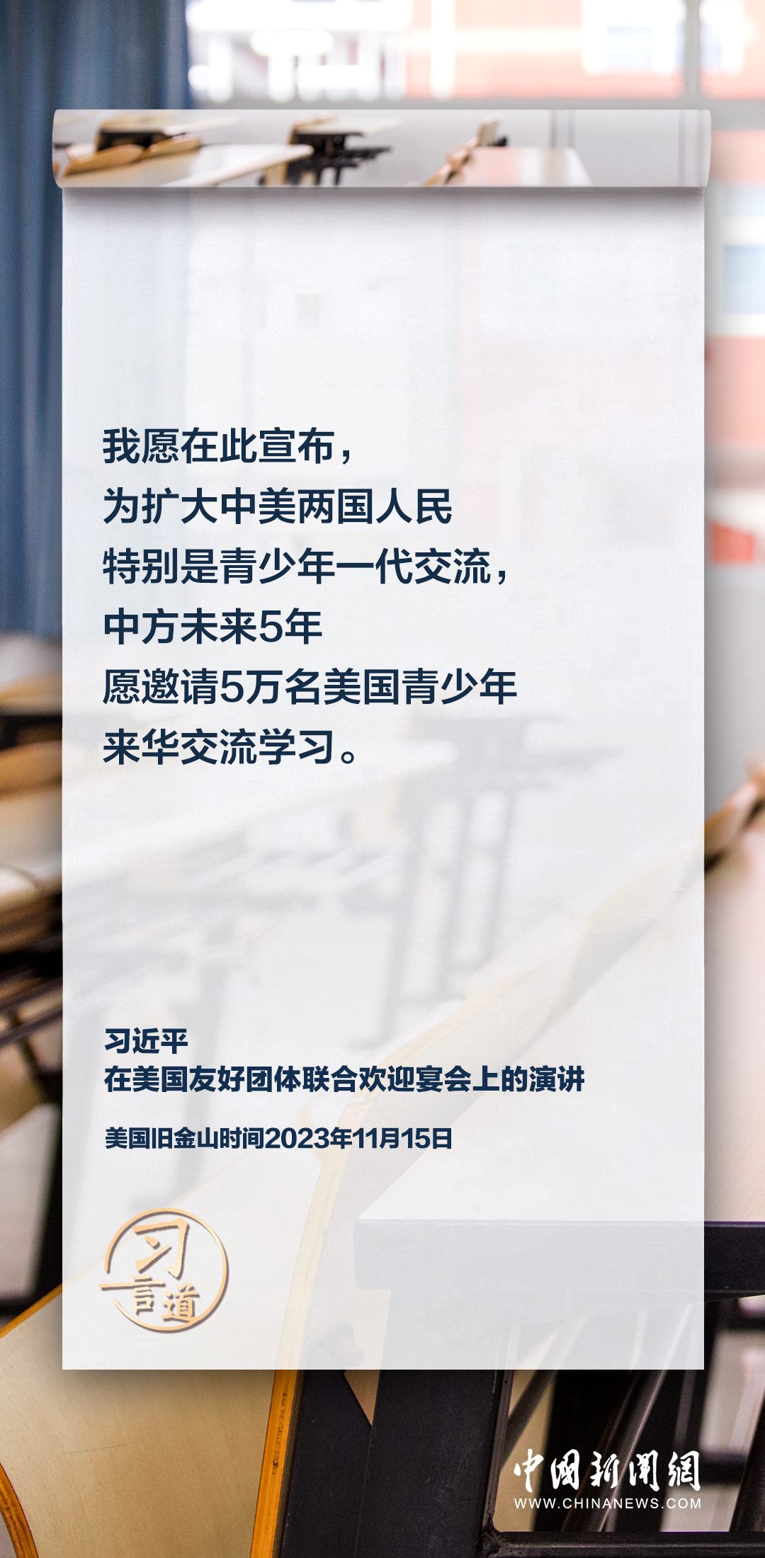 當(dāng)?shù)貢r間11月15日,中國國家主席習(xí)近平在美國舊金山出席美國友好團體聯(lián)合歡迎宴會并發(fā)表演講。習(xí)近平在演講中從“我”和“我們”說起,提出中國主張、表明中國立場、展現(xiàn)大國擔(dān)當(dāng),話語擲地有聲。