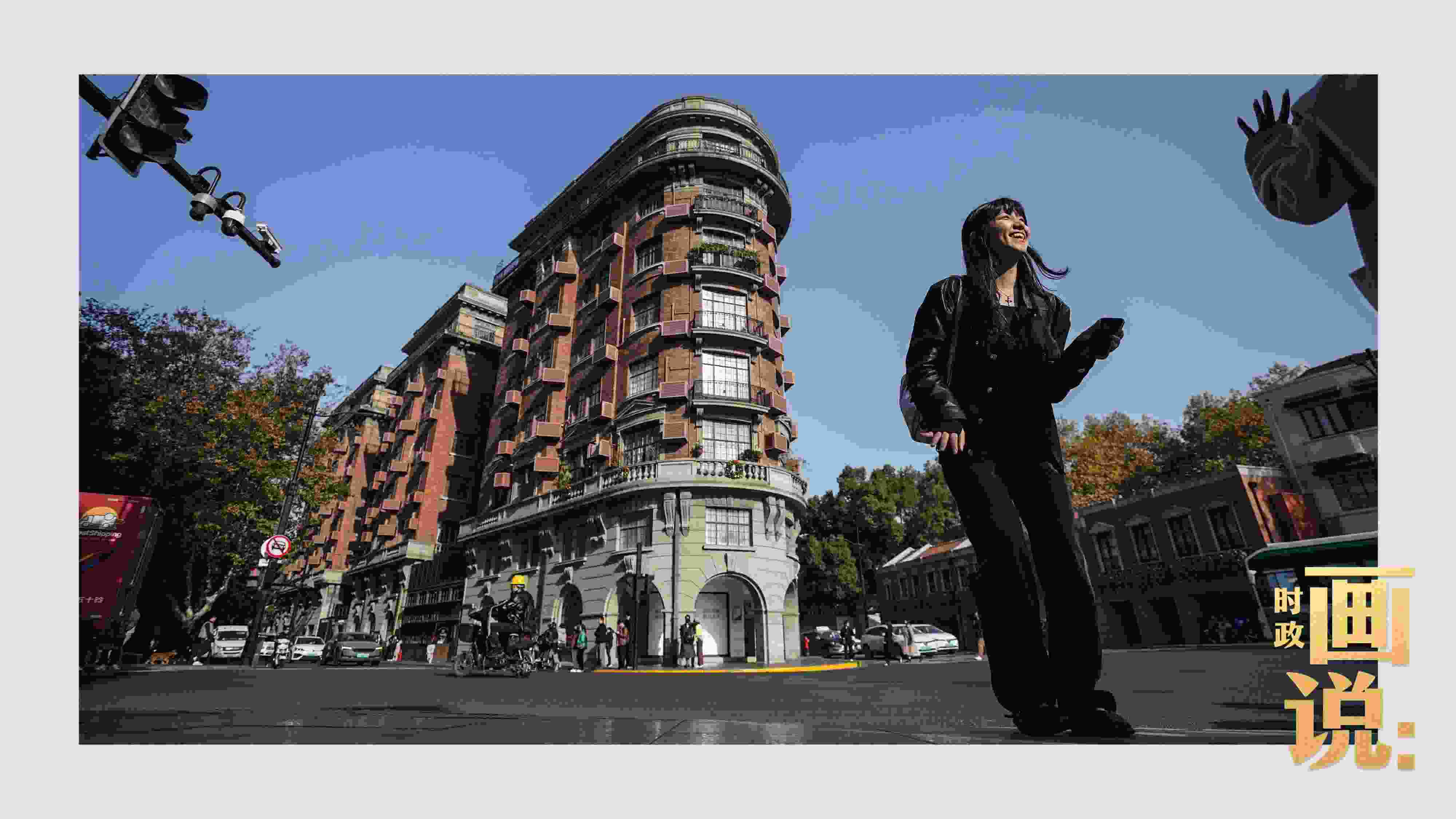 △武康大樓前留影的外籍游客興奮不已?;春V新?,上海。