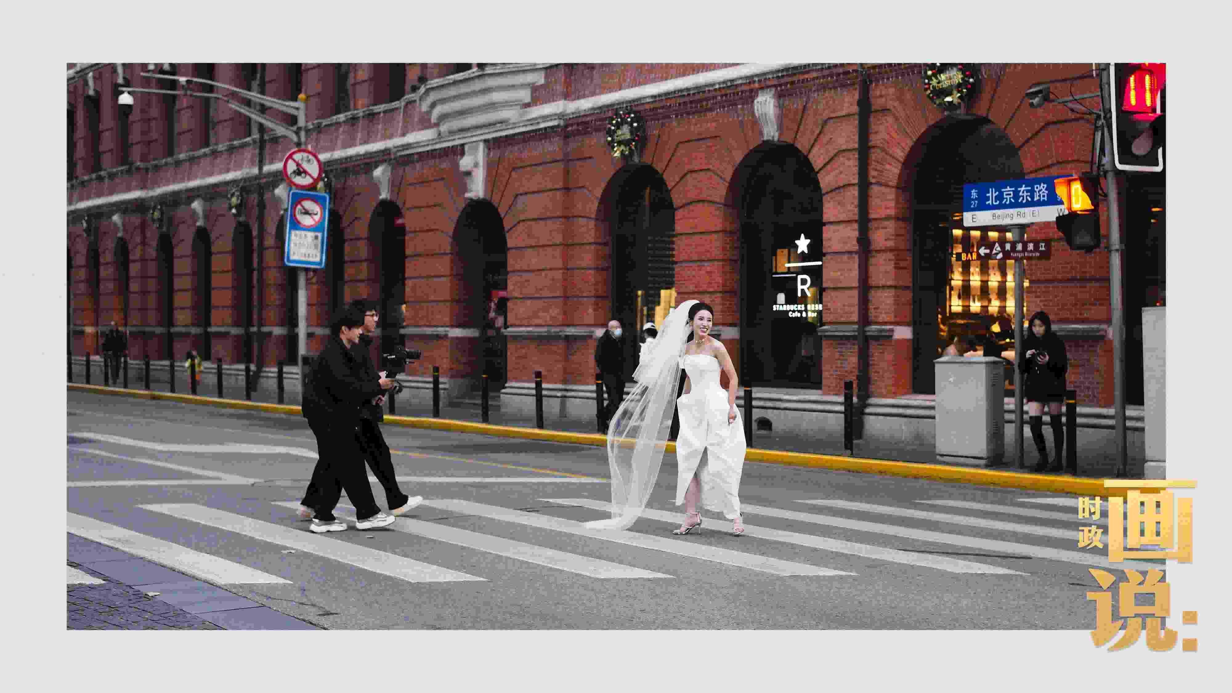 △身著婚紗的新娘穿行于古老的外灘街巷。包容、開(kāi)放與時(shí)尚,是洋溢在這座城市中的別樣煙火氣息。黃浦區(qū),上海。