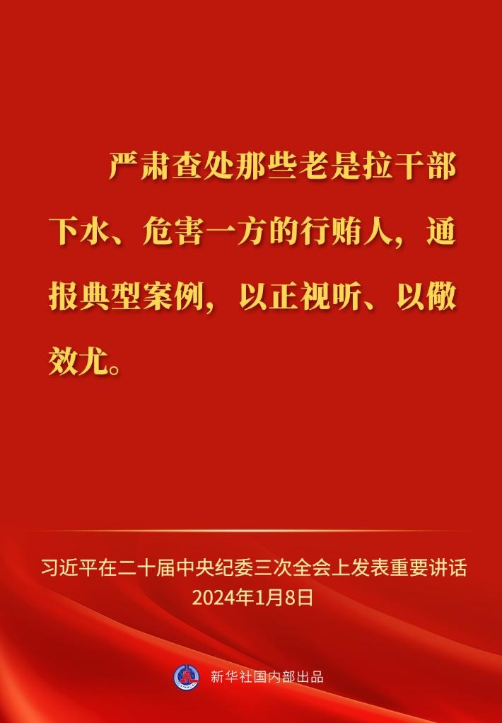 ??中共中央總書(shū)記、國(guó)家主席、中央軍委主席習(xí)近平8日上午在中國(guó)共產(chǎn)黨第二十屆中央紀(jì)律檢查委員會(huì)第三次全體會(huì)議上發(fā)表重要講話,一起來(lái)看金句?! ?/p>