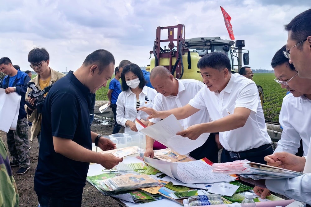 黑龍江省農(nóng)業(yè)農(nóng)村廳種植業(yè)管理處工作人員在哈爾濱市雙城區(qū)地頭,向農(nóng)民發(fā)放科學(xué)用農(nóng)藥資料(2023年6月11日攝)。學(xué)習(xí)貫徹習(xí)近平新時代中國特色社會主義思想主題教育工作會議召開以來,黑龍江省農(nóng)業(yè)農(nóng)村廳種植業(yè)管理處將理論學(xué)習(xí)與實際工作相結(jié)合,深入“田間地頭”調(diào)查研究、深入推進(jìn)“千萬噸糧食增產(chǎn)計劃”,助力黑龍江省當(dāng)好維護(hù)國家糧食安全“壓艙石”,將主題教育成果融入到維護(hù)國家糧食安全的具體實踐中。新華社發(fā)