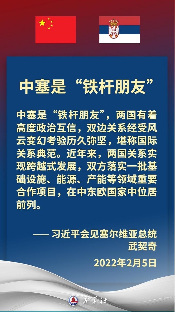 塞爾維亞是中國在中東歐地區(qū)首個全面戰(zhàn)略伙伴。近年來,在習近平主席和武契奇總統(tǒng)戰(zhàn)略引領下,中塞關系保持高水平運行,雙方堅定支持彼此核心利益和重大關切,兩國政治互信牢固,高質(zhì)量共建“一帶一路”取得豐碩成果,在多邊領域協(xié)調(diào)緊密。習近平主席多次在重要場合提及,中國和塞爾維亞是“鐵桿朋友”。