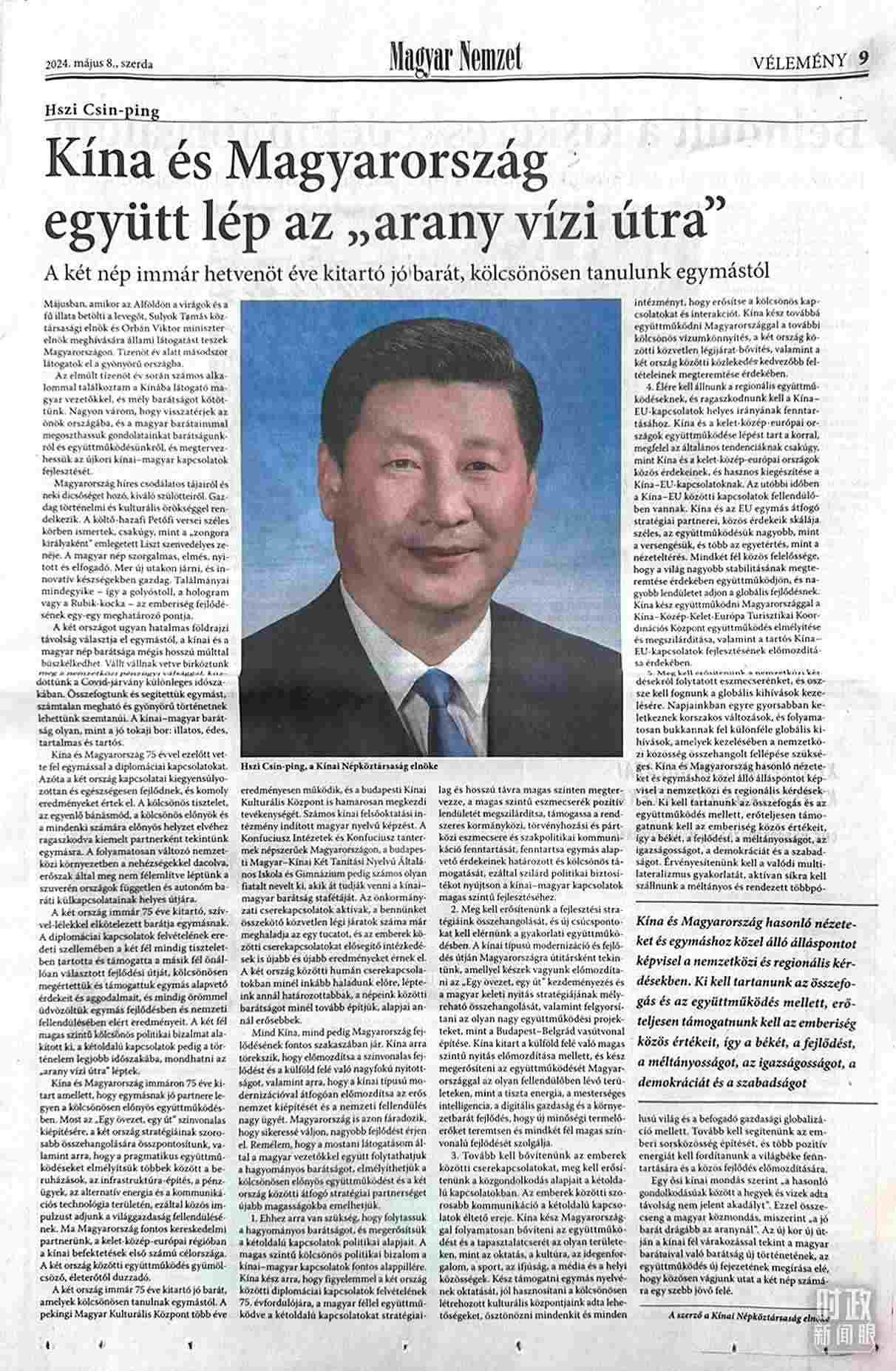 △習(xí)主席在匈牙利《匈牙利民族報(bào)》發(fā)表的署名文章。(總臺(tái)記者沃龍拍攝)