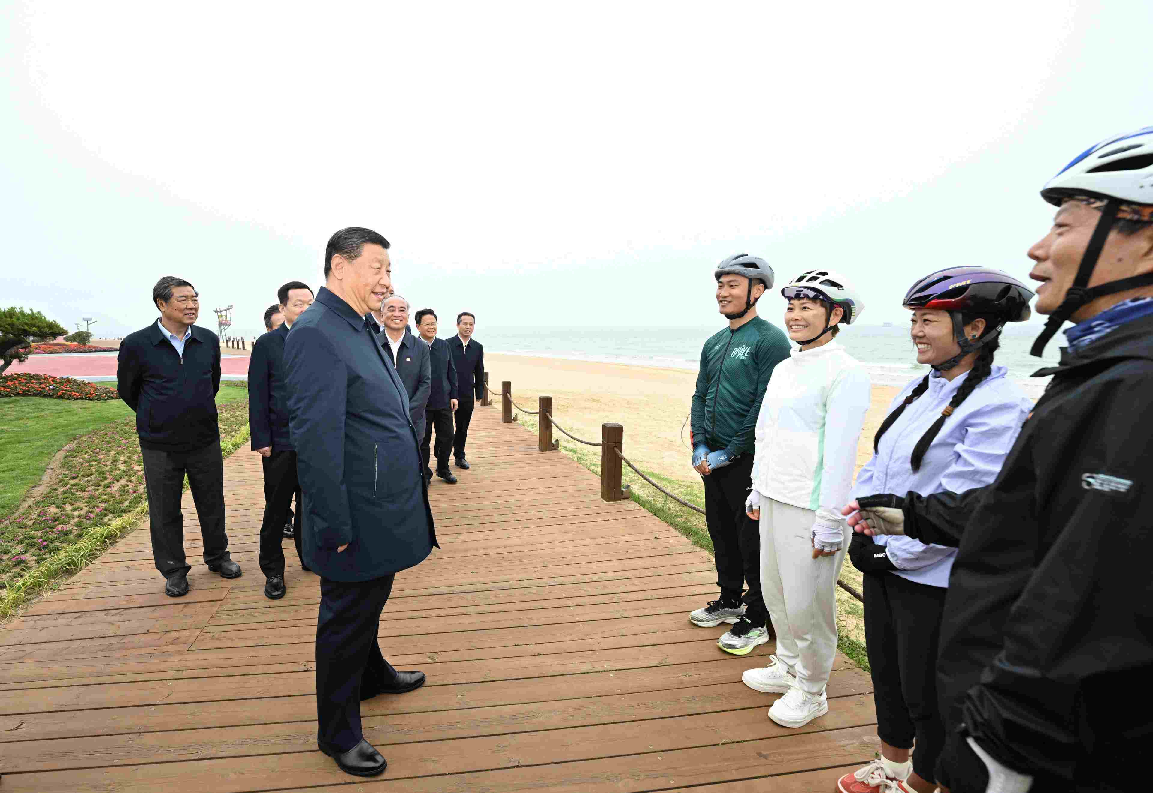 22日下午,習(xí)近平總書記來到山東日照市陽光海岸綠道,實地察看修復(fù)治理后的海岸線生態(tài)環(huán)境,并同正在海邊休閑鍛煉的市民游客親切交流。習(xí)近平強(qiáng)調(diào),老百姓的幸福生活是干出來的。我們要靠實干奮斗,實現(xiàn)中華民族偉大復(fù)興,使人民群眾生活越來越好。(杜尚澤)