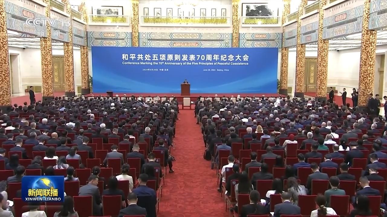 6月28日,國(guó)家主席習(xí)近平出席和平共處五項(xiàng)原則發(fā)表70周年紀(jì)念大會(huì),并發(fā)表題為《弘揚(yáng)和平共處五項(xiàng)原則,攜手構(gòu)建人類命運(yùn)共同體》的重要講話。習(xí)近平主席在講話中全面闡釋和平共處五項(xiàng)原則的精神內(nèi)涵和時(shí)代價(jià)值,在世界百年未有之大變局中指明構(gòu)建人類命運(yùn)共同體的前進(jìn)方向,發(fā)出“全球南方”同世界各國(guó)人民共創(chuàng)美好未來(lái)的時(shí)代強(qiáng)音。與會(huì)國(guó)內(nèi)外人士表示,習(xí)近平主席的重要講話飽含著對(duì)歷史的深邃思考、對(duì)現(xiàn)實(shí)的深刻分析、對(duì)未來(lái)的長(zhǎng)遠(yuǎn)謀劃,必將對(duì)推動(dòng)各國(guó)同心協(xié)力建設(shè)更加美好世界產(chǎn)生重大而深遠(yuǎn)的影響。