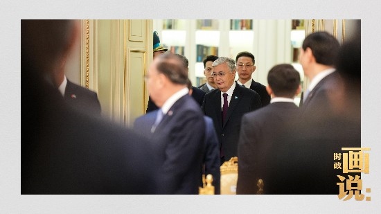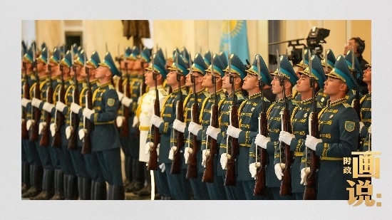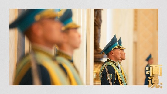 當(dāng)?shù)貢r間3日,國家主席習(xí)近平在阿斯塔納出席哈薩克斯坦總統(tǒng)托卡耶夫在總統(tǒng)府舉行的歡迎儀式。習(xí)近平主席乘車抵達(dá)時,托卡耶夫總統(tǒng)熱情迎接,以最高禮儀歡迎習(xí)近平主席對哈薩克斯坦進(jìn)行國事訪問。