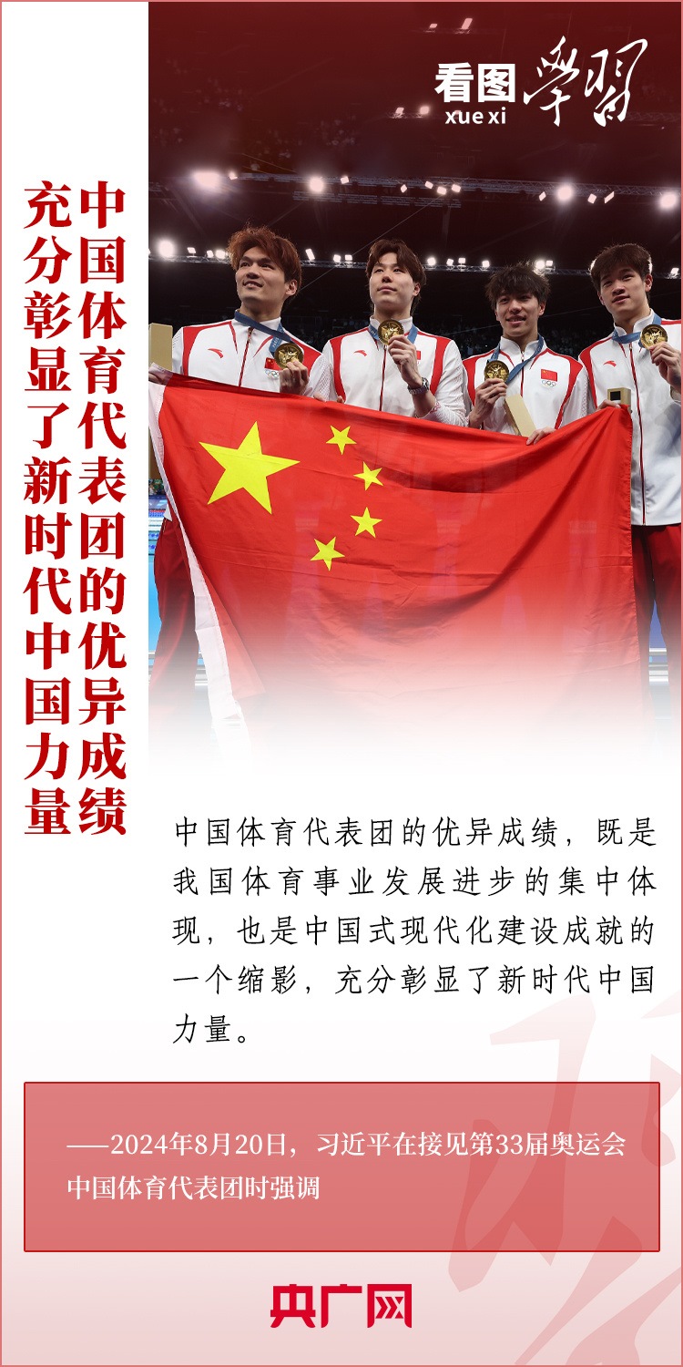 “祖國和人民為你們驕傲,為你們點(diǎn)贊?!?月20日,習(xí)近平總書記在人民大會(huì)堂接見第33屆奧運(yùn)會(huì)中國體育代表團(tuán)并發(fā)表重要講話??倳浉叨瓤隙ㄖ袊w育代表團(tuán)取得的優(yōu)異成績,贊揚(yáng)他們充分彰顯了新時(shí)代中國力量、生動(dòng)詮釋了新時(shí)代中國精神、充分展現(xiàn)了新時(shí)代中國形象,勉勵(lì)大家戒驕戒躁、再接再厲,為建設(shè)體育強(qiáng)國再立新功。一起來學(xué)習(xí)!