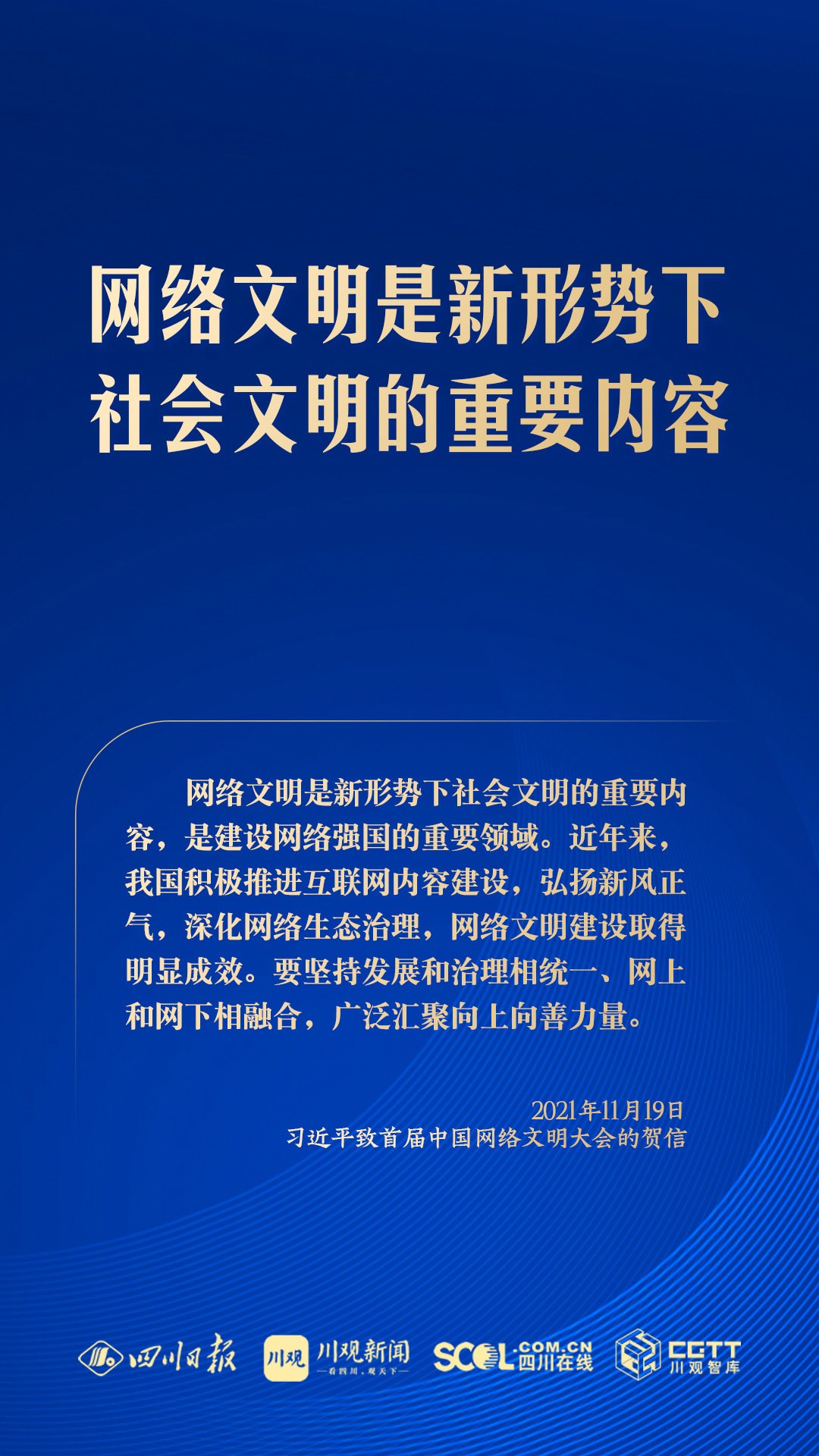 網(wǎng)絡(luò)空間是億萬民眾共同的精神家園。黨的十八大以來,習(xí)近平總書記高度重視網(wǎng)絡(luò)文明建設(shè),把網(wǎng)絡(luò)文明作為社會主義精神文明建設(shè)和網(wǎng)絡(luò)強(qiáng)國建設(shè)的重要內(nèi)容,引領(lǐng)和推動網(wǎng)絡(luò)文明建設(shè)取得顯著成效。2024年中國網(wǎng)絡(luò)文明大會舉辦之際,川觀新聞梳理習(xí)近平總書記關(guān)于網(wǎng)絡(luò)文明建設(shè)的相關(guān)論述,一起來學(xué)習(xí)↓↓↓