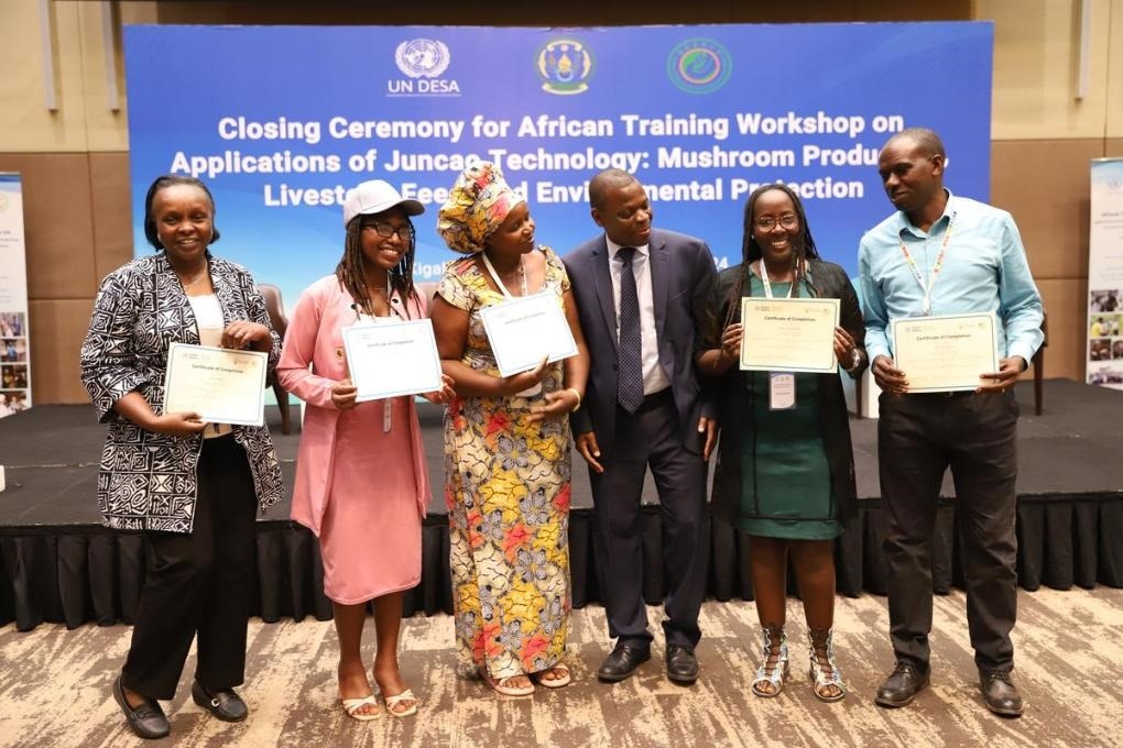 8月初,在非洲地區(qū)菌草技術(shù)培訓班舉辦期間,聯(lián)合國官員和使團代表團專程赴盧旺達考察菌草技術(shù)和產(chǎn)業(yè)在非洲地區(qū)的發(fā)展?!拔液芨吲d同其他聯(lián)合國官員一起,親眼見證菌草技術(shù)以實際行動造福民眾?!甭?lián)合國秘書長辦公室主任考特尼·拉特雷說,菌草技術(shù)具有“可負擔”的突出優(yōu)勢,“對非洲大陸所有發(fā)展中國家很有價值、非常適用”。
