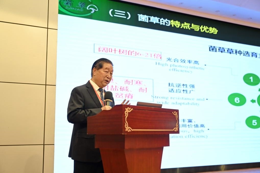 6月16日,第十九屆國際菌草產(chǎn)業(yè)發(fā)展研討會在福建福州舉行,國家菌草工程技術(shù)研究中心首席科學家林占熺發(fā)表《菌草技術(shù)助力落實聯(lián)合國可持續(xù)發(fā)展目標的潛力》主旨報告。新華社記者 林善傳 攝