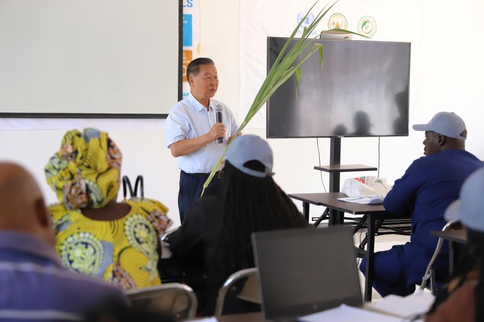 8月4日,在盧旺達南方省胡耶區(qū),林占熺為非洲地區(qū)菌草技術(shù)培訓班授課。新華社發(fā)(黃萬晴攝)