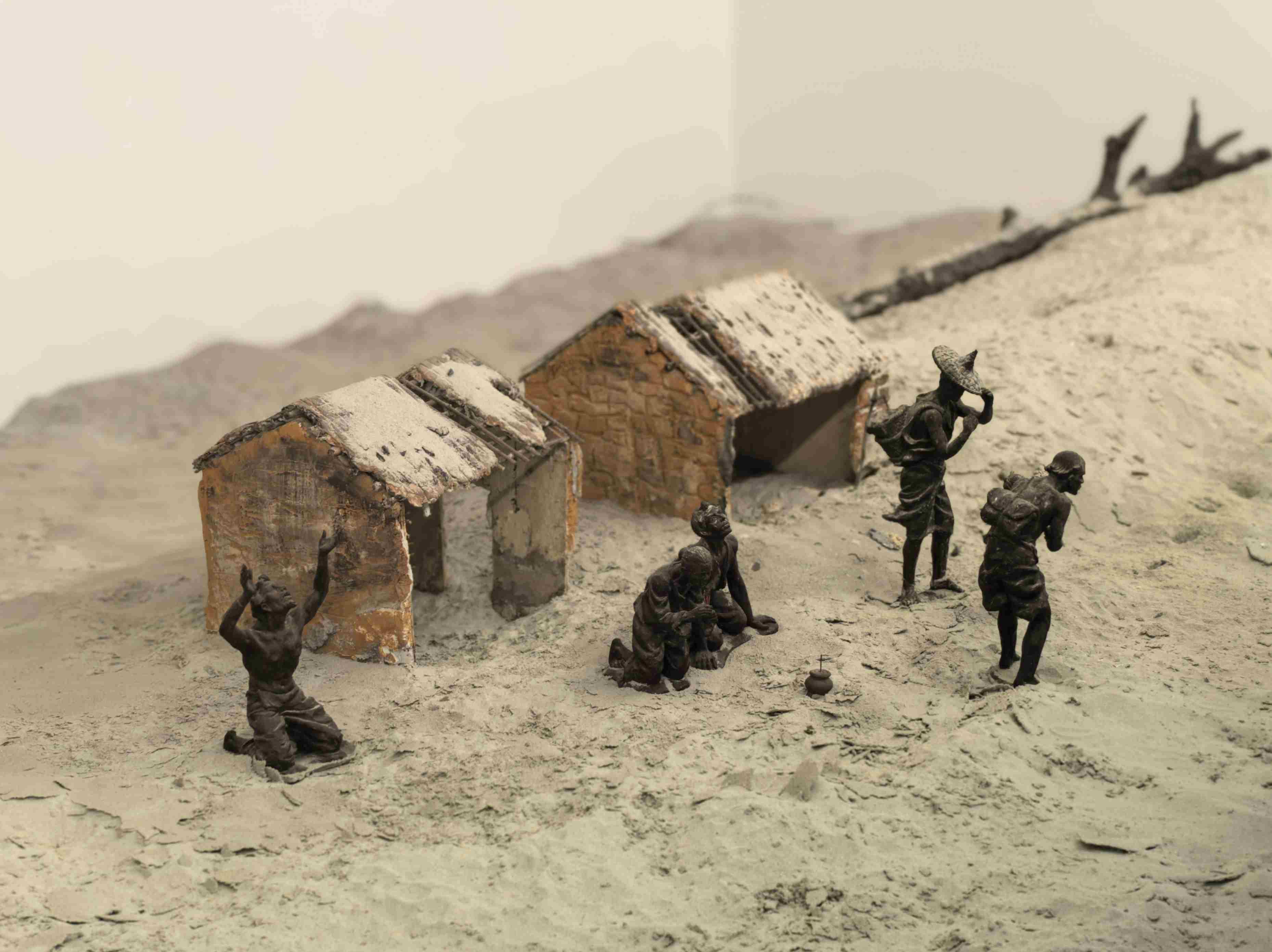 △谷文昌紀念館里展示的當年東山人民飽受風沙災害之苦的情景。(總臺央廣記者潘毅拍攝)