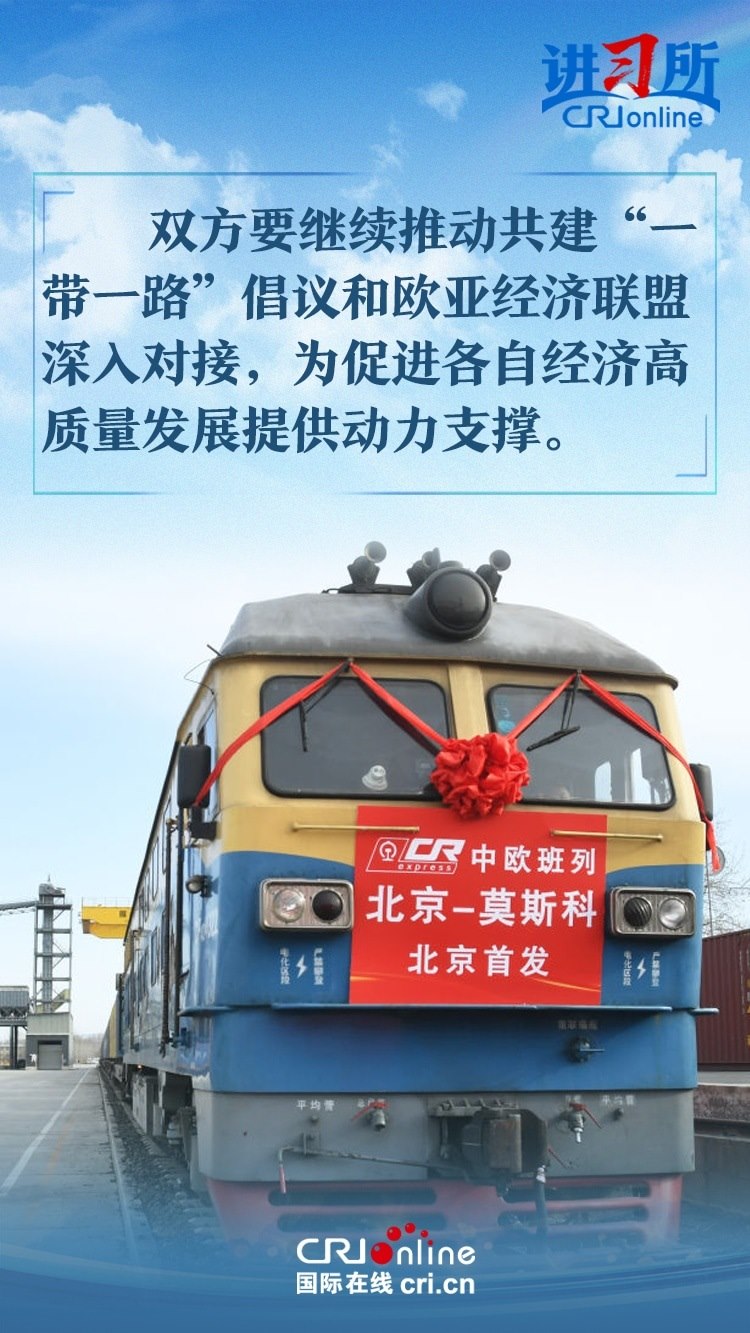習(xí)近平主席在同俄羅斯總統(tǒng)普京會(huì)晤時(shí)指出,中俄世代友好的深厚情誼不會(huì)變,濟(jì)世為民的大國(guó)擔(dān)當(dāng)不會(huì)變。雙方要繼續(xù)推動(dòng)共建“一帶一路”倡議和歐亞經(jīng)濟(jì)聯(lián)盟深入對(duì)接,為促進(jìn)各自經(jīng)濟(jì)高質(zhì)量發(fā)展提供動(dòng)力支撐。