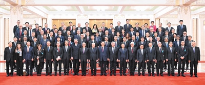 會(huì)見(jiàn)前,兩國(guó)元首同雙方代表合影留念。