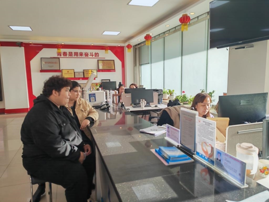 2024年10月25日,固原巷社區(qū)服務(wù)大廳,社區(qū)干部正在為居民辦理業(yè)務(wù)。新華社記者 于濤 攝