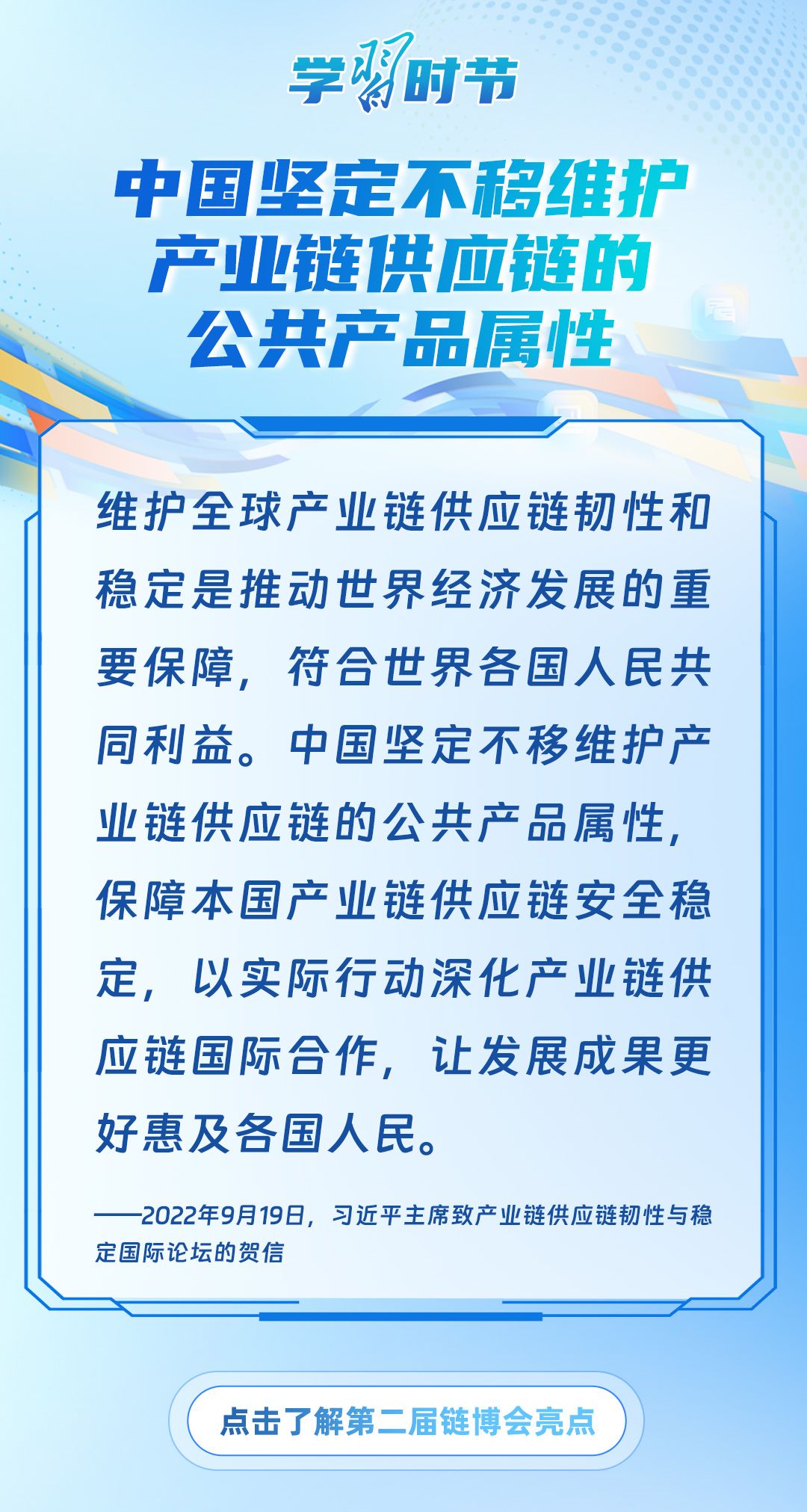 習(xí)近平主席心系產(chǎn)業(yè)鏈供應(yīng)鏈安全穩(wěn)定,多次強(qiáng)調(diào)中國將以實(shí)際行動(dòng)維護(hù)全球產(chǎn)業(yè)鏈供應(yīng)鏈安全穩(wěn)定,為世界各國共同構(gòu)筑安全穩(wěn)定、暢通高效、開放包容、互利共贏的全球產(chǎn)業(yè)鏈供應(yīng)鏈體系提供中國方案。習(xí)近平主席曾在多個(gè)重要場(chǎng)合對(duì)此作出一系列深刻闡述,讓我們一起學(xué)習(xí)。