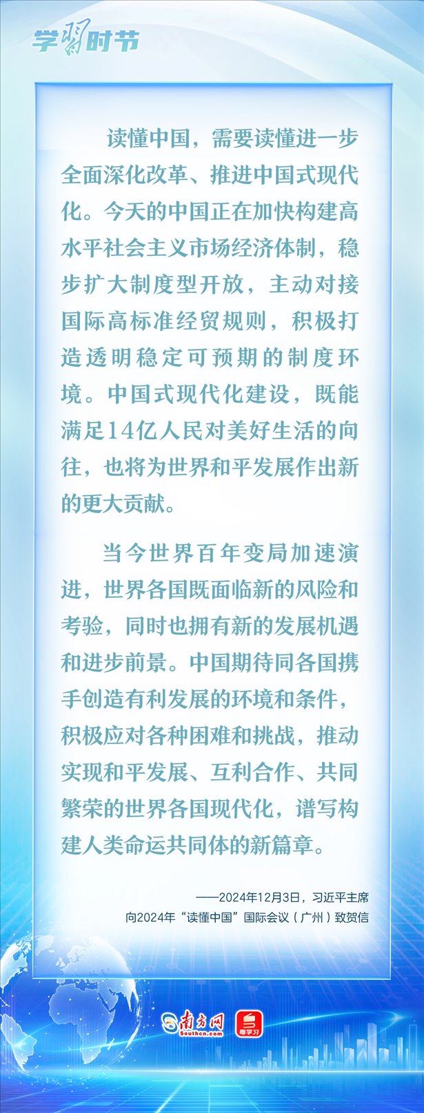 12月3日,國(guó)家主席習(xí)近平向2024年“讀懂中國(guó)”國(guó)際會(huì)議(廣州)致賀信。