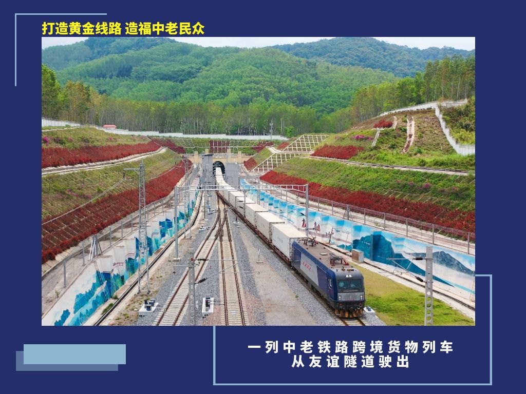 2021年12月3日,中老鐵路全線開(kāi)通運(yùn)營(yíng)。習(xí)近平總書(shū)記通過(guò)視頻連線出席中老鐵路通車(chē)儀式時(shí)指出,中老鐵路是兩國(guó)互利合作的旗艦項(xiàng)目。鐵路一通,昆明到萬(wàn)象從此山不再高、路不再長(zhǎng)。雙方要再接再厲、善作善成,把鐵路維護(hù)好、運(yùn)營(yíng)好,把沿線開(kāi)發(fā)好、建設(shè)好,打造黃金線路,造福兩國(guó)民眾。