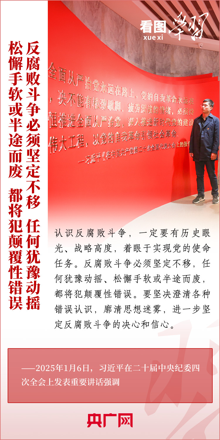 1月6日,習(xí)近平總書記在二十屆中央紀委四次全會上發(fā)表重要講話,充分肯定過去一年全面從嚴治黨取得的新進展、新成效,深刻分析當(dāng)前反腐敗斗爭形勢,對堅決打好反腐敗斗爭攻堅戰(zhàn)、持久戰(zhàn)、總體戰(zhàn)提出明確要求。總書記強調(diào),新時代新征程,必須堅持用改革精神和嚴的標(biāo)準(zhǔn)管黨治黨,努力取得更大成效,確保黨的二十大和二十屆三中全會部署落地落實,確保黨始終成為中國特色社會主義事業(yè)的堅強領(lǐng)導(dǎo)核心,推動中國式現(xiàn)代化行穩(wěn)致遠。一起來學(xué)習(xí)!