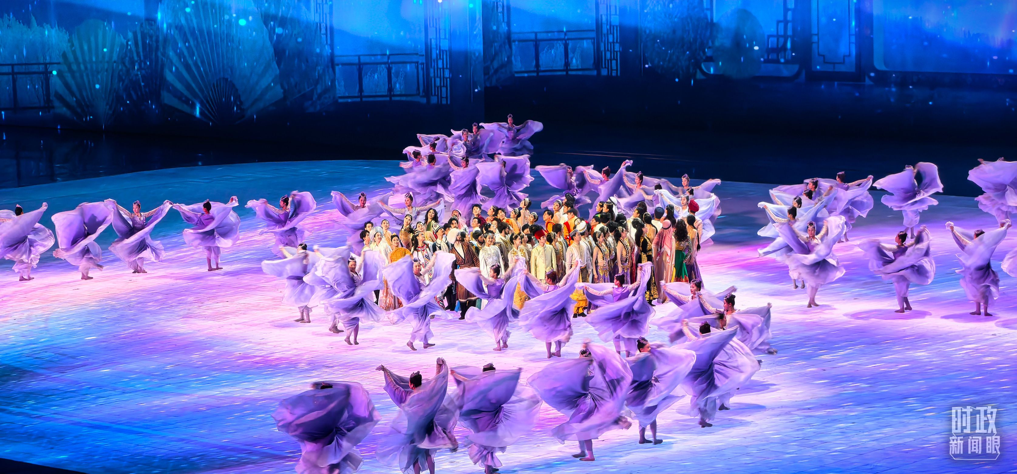 文藝表演分為上篇《熾熱冰雪》、中篇《燃情時速》、下篇《山高水長》,通過《長歌頌冰河》《榮光耀未來》《馳騁天地間》《璀璨嘉年華》《攜手情久長》《萬里共和鳴》等節(jié)目,展現(xiàn)化“極寒”為“極美”“極燃”“極暖”的意蘊(yùn)。