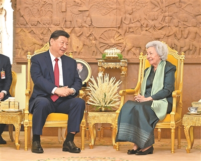本報金邊4月17日電 (記者王玉琳、包晗)4月17日晚,國家主席習(xí)近平同柬埔寨太后莫尼列在金邊王宮舉行會見。