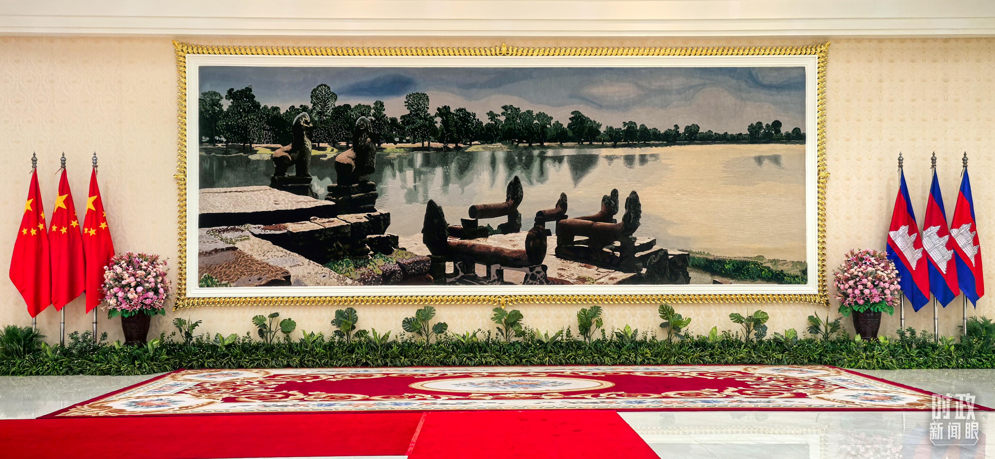 △習(xí)主席會(huì)見(jiàn)洪森前的合影現(xiàn)場(chǎng)。(總臺(tái)央視記者范凱拍攝)