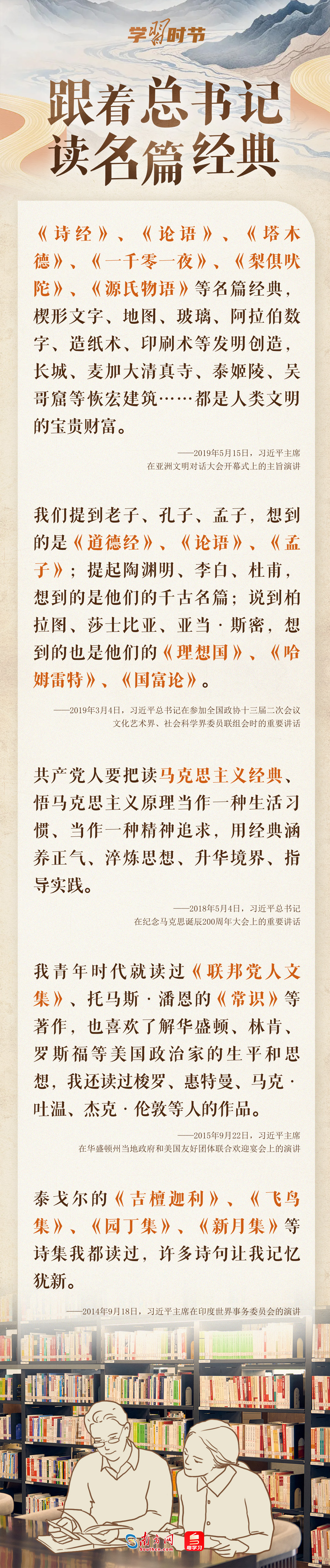 書籍是人類知識(shí)的載體,是人類智慧的結(jié)晶,是人類進(jìn)步的階梯。習(xí)近平總書記酷愛(ài)讀書,多次講述和書籍的不解之緣,分享讀書感悟。他說(shuō):“我愛(ài)好挺多,最大的愛(ài)好是讀書,讀書已成為我的一種生活方式?!?/p>