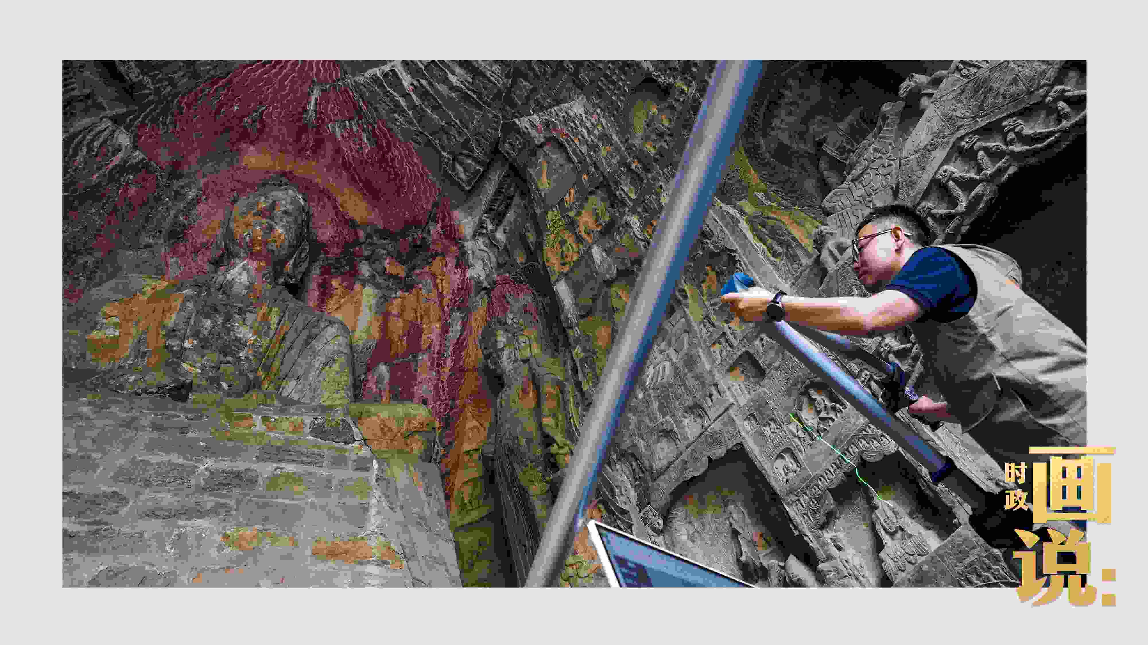 △工作人員在對石刻病害情況進行詳細記錄