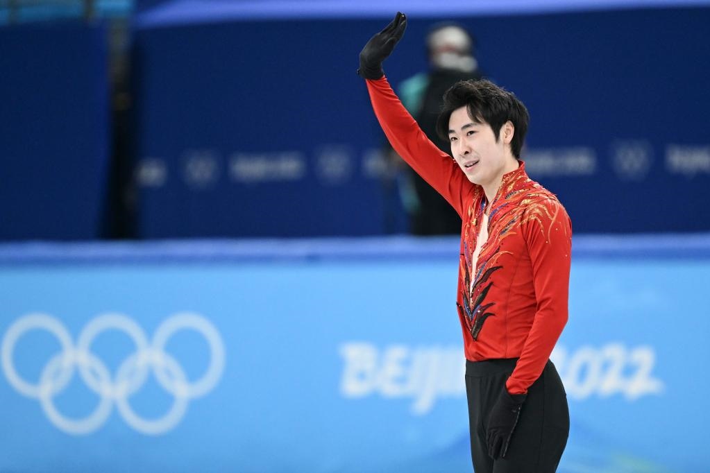 2月10日,中國(guó)選手金博洋在男單自由滑比賽后。新華社記者鞠煥宗攝