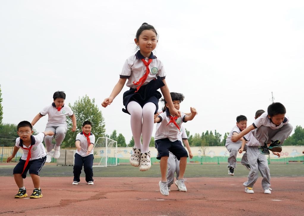 6月27日,在北京第二實(shí)驗(yàn)小學(xué)平谷分校,二年級(jí)(2)班的學(xué)生上體育課。新華社記者任超攝