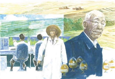 (六)如今,八畝薄田已發(fā)展為一百四十畝標(biāo)準(zhǔn)化玉米育種基地,通過實時監(jiān)控系統(tǒng),科技人員在鶴壁也可以指導(dǎo)海南育種基地種植。八十七歲的程相文依然常在玉米地里一待就是大半天。“一粒種子可以改變一個世界。希望再為農(nóng)民多培育出幾個好品種?!彼f。