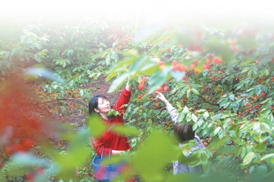 日曬雨淋又三年,櫻桃苗長(zhǎng)成了小樹(shù),閃爍著紅潤(rùn)光澤的櫻桃果掛滿(mǎn)了枝頭,鮮艷欲滴。慕名而來(lái)的城里人在果園前排起長(zhǎng)隊(duì),每公斤櫻桃賣(mài)到15元。安從貴當(dāng)年收入了3萬(wàn)多元,不但還清了老賬,還破天荒為一家老小添置了新衣裳?!鞍l(fā)財(cái)”了的安從貴專(zhuān)門(mén)從鎮(zhèn)上買(mǎi)來(lái)一堆酒菜,軟磨硬泡地把徐富軍請(qǐng)到家里敘舊,兩個(gè)老朋友邊吃邊聊,開(kāi)心不已。