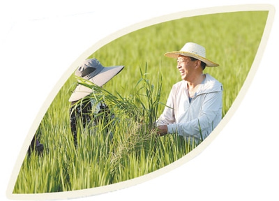 在江蘇省淮安市岔河鎮(zhèn),農(nóng)民企業(yè)家趙建國(右)與村民在水稻田除草。陳 凱攝(新華社發(fā))