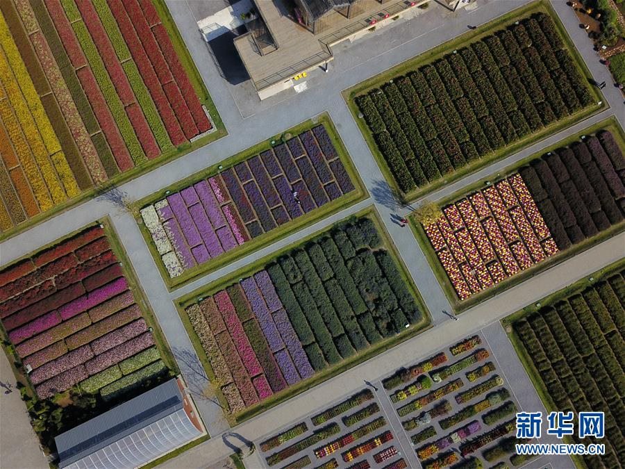 這是北京世園會園藝小鎮(zhèn)(10月7日無人機(jī)拍攝)。