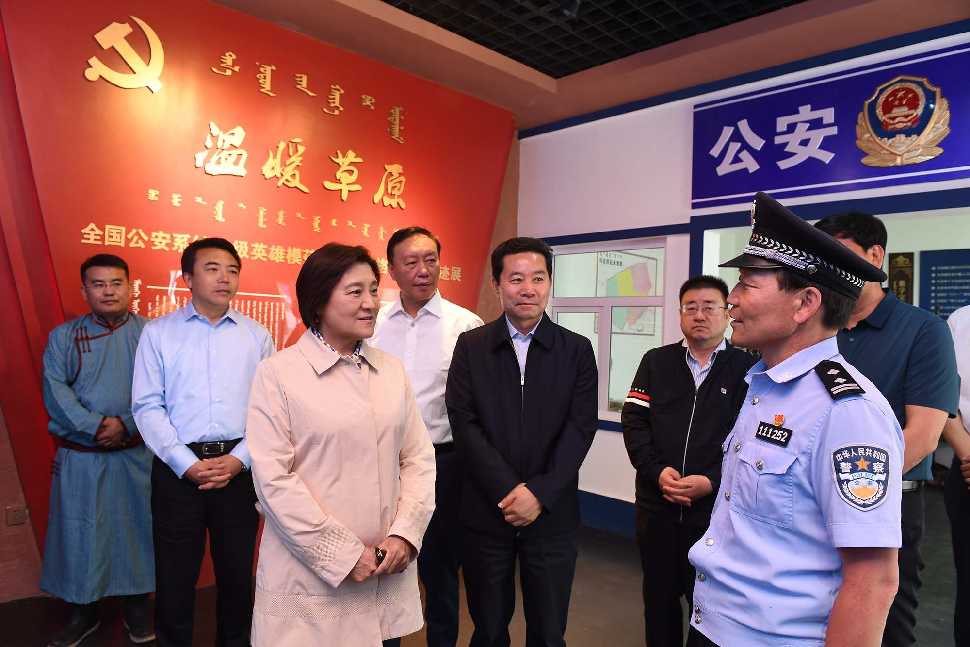 烏拉特后旗公安局潮格溫都爾鎮(zhèn)派出所民警寶音德力格爾被授予“全國公安系統(tǒng)一級(jí)英雄模范”榮譽(yù)稱號(hào)。布小林走進(jìn)寶音德力格爾事跡館參觀,與寶音德力格爾親切交談,對(duì)他舍小家顧大家、為人民群眾無私奉獻(xiàn)的精神給予充分肯定。