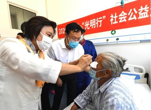 6月14日,自治區(qū)主席、紅十字會(huì)名譽(yù)會(huì)長、全區(qū)“光明行”社會(huì)公益活動(dòng)組委會(huì)主任委員布小林深入赤峰市翁牛特旗蒙醫(yī)中醫(yī)醫(yī)院為接受白內(nèi)障手術(shù)的患者揭開紗布。內(nèi)蒙古日?qǐng)?bào)社融媒體記者 韓卿立 攝