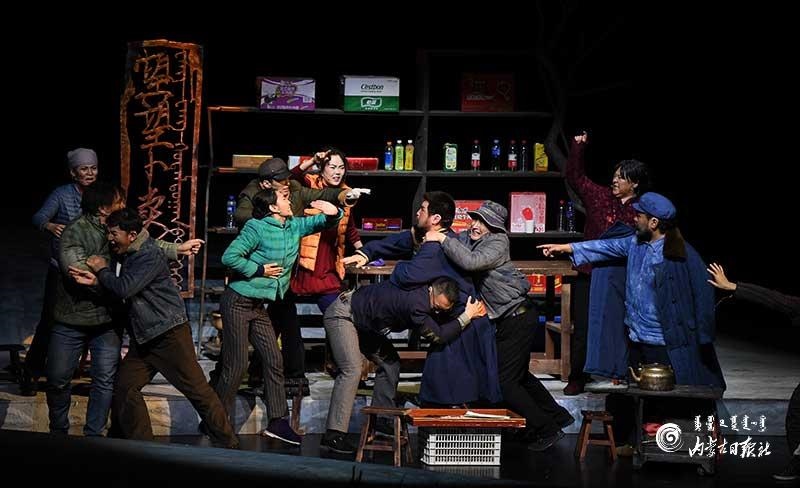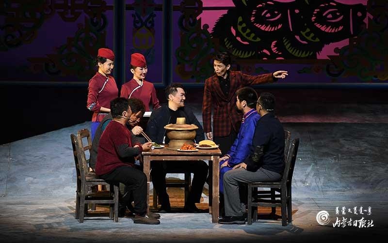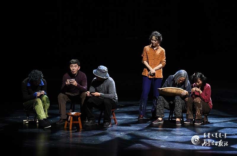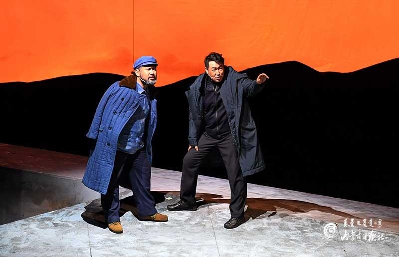參演《紅手印》的都是來自草原的蒙古族演員,不僅要完成漢語的臺詞,還要熟練自然地講出大量內蒙古西部方言對白?!皩τ谠拕⊙輪T來說,臺詞功底太重要了。為了練好方言,我們好多演員早起練功的時候嘴里都念念有詞地說著西部方言?!毖輪T烏仁朝魯門說。他扮演的新扎木村主任令人印象深刻,一個一心想帶百姓致富卻屢遭失敗的老黨員形象?!爸氨硌輾v史題材的話劇大多是從影像和資料了解人物,這部戲的題材貼近觀眾們的現(xiàn)實生活,必須接地氣才能得到認可。我通過寫人物小傳的方式,深挖村主任的人物個性和從失望到燃起希望的內心世界,讓觀眾能夠認可這個形象。”烏仁朝魯門說。