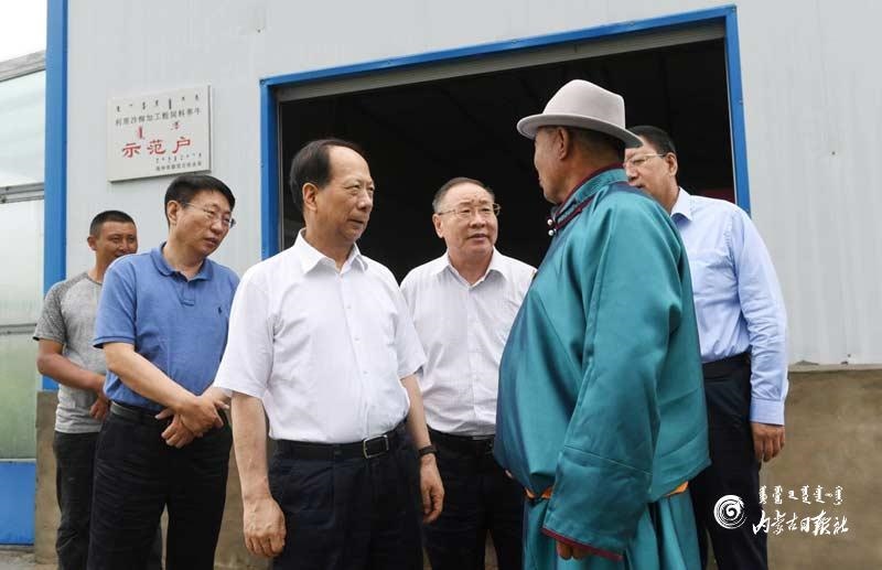 7月27日,自治區(qū)黨委書(shū)記、人大常委會(huì)主任石泰峰深入錫林郭勒盟正藍(lán)旗桑根達(dá)來(lái)鎮(zhèn)恩克寶力格嘎查,了解家庭牧場(chǎng)畜牧業(yè)生產(chǎn)生活情況。內(nèi)蒙古日?qǐng)?bào)記者袁永紅攝