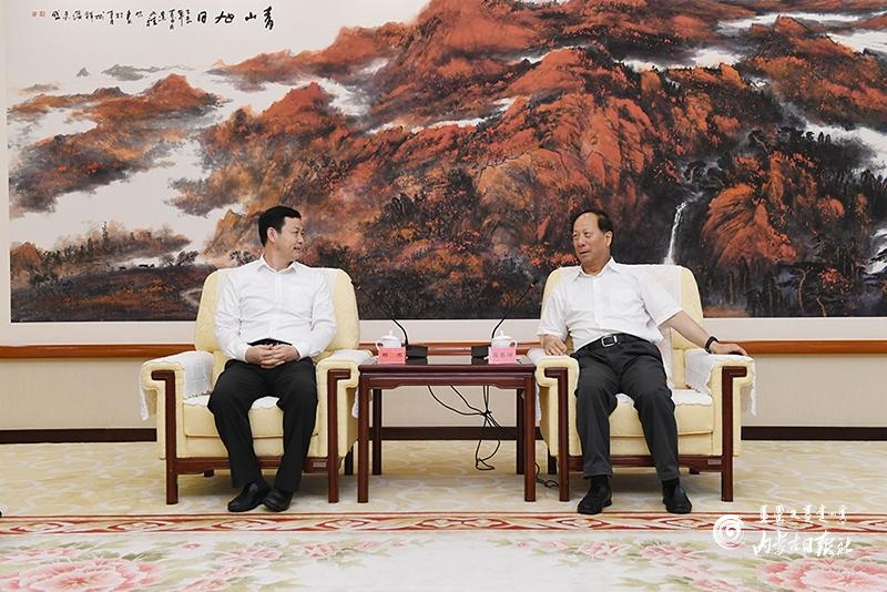 8月27日下午,自治區(qū)黨委書記、人大常委會主任石泰峰在呼和浩特會見中國移動通信集團(tuán)有限公司董事長楊杰。內(nèi)蒙古日報社融媒體記者 袁永紅 攝