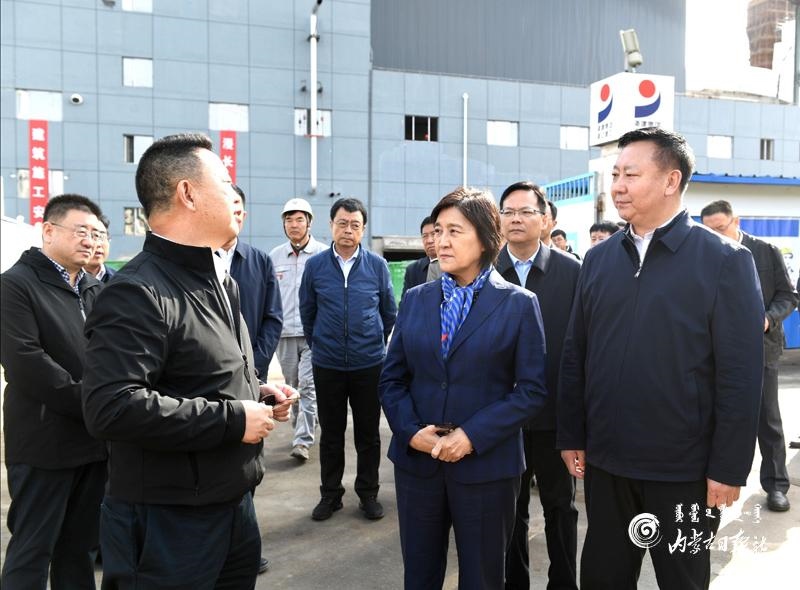 10月11日,自治區(qū)黨委副書記、自治區(qū)主席布小林來到烏海市烏達區(qū)內(nèi)蒙古興發(fā)科技有限公司有機硅新材料一體化循環(huán)項目現(xiàn)場,深入了解企業(yè)技術路線、環(huán)保裝置等方面情況。內(nèi)蒙古日報記者 韓卿立 攝