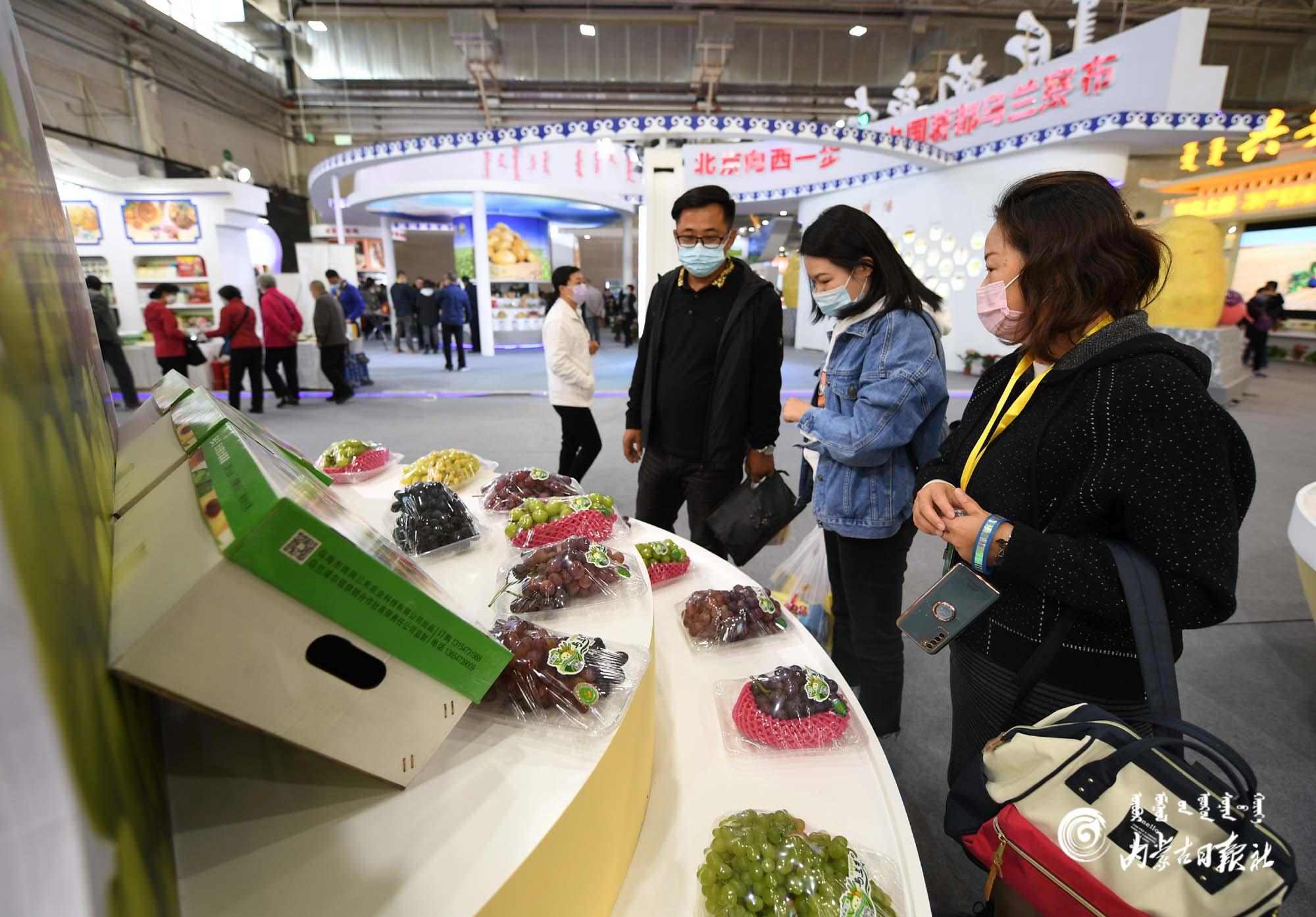 一走進烏海展廳,一陣濃郁的葡萄香味撲面而來,色澤艷麗、珠圓玉潤的品相更是令人垂涎欲滴,路過的市民紛紛駐足詢價。