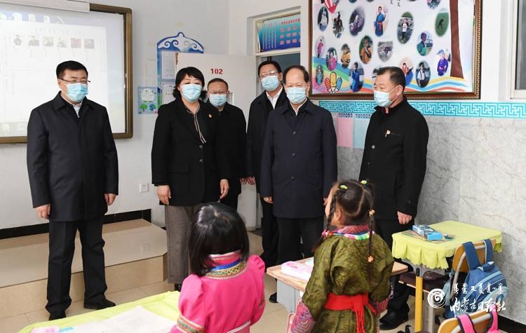 11月9日,自治區(qū)黨委書記、人大常委會(huì)主任石泰峰來到錫林浩特市民族小學(xué)了解學(xué)生學(xué)習(xí)情況。內(nèi)蒙古日?qǐng)?bào)記者 袁永紅攝